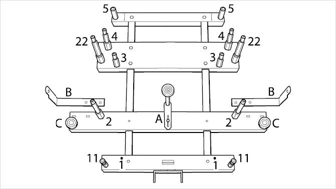 ^ The take-up points 11 and 22 are required for removing the rear axle. Remove the remaining take-up points.
