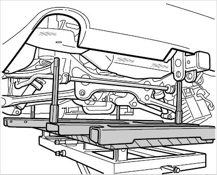 11. Position the lifting platform with the mounting frame under the rear axle housing.