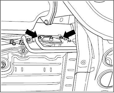 2. Remove shield on the transmission. To do this, unscrew three fastening screws -Arrow-.