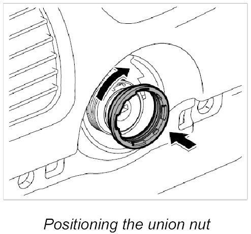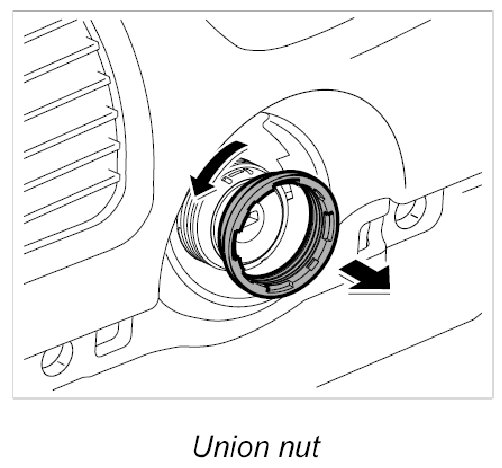3. Turn union nut using a narrow plastic spatula, for example, or using the special wrench T10152 tool and unscrew the ring from the ignition starter switch.