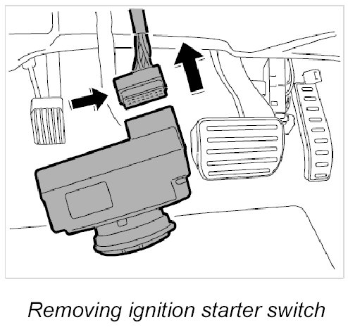 5. Press connector -arrow- and pull off from ignition starter switch.