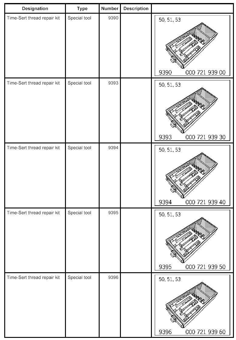 - Thread repairs can only be carried out using the Time-Sert thread repair system.