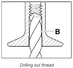 1. Drill out thread