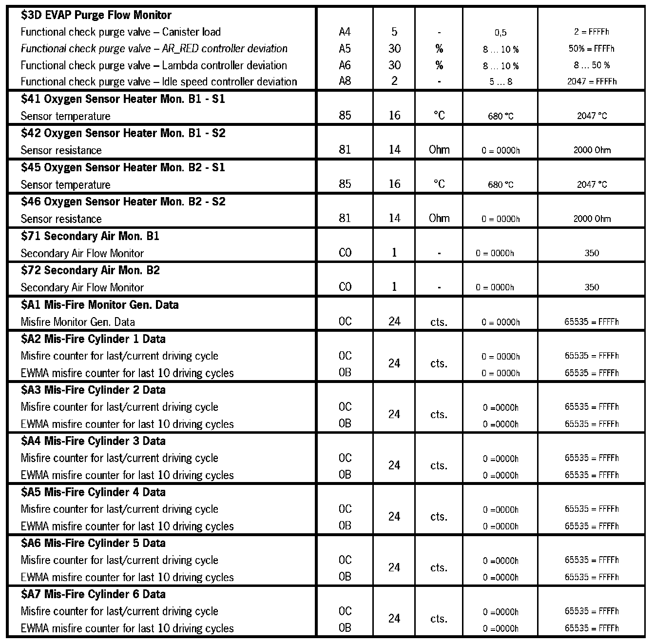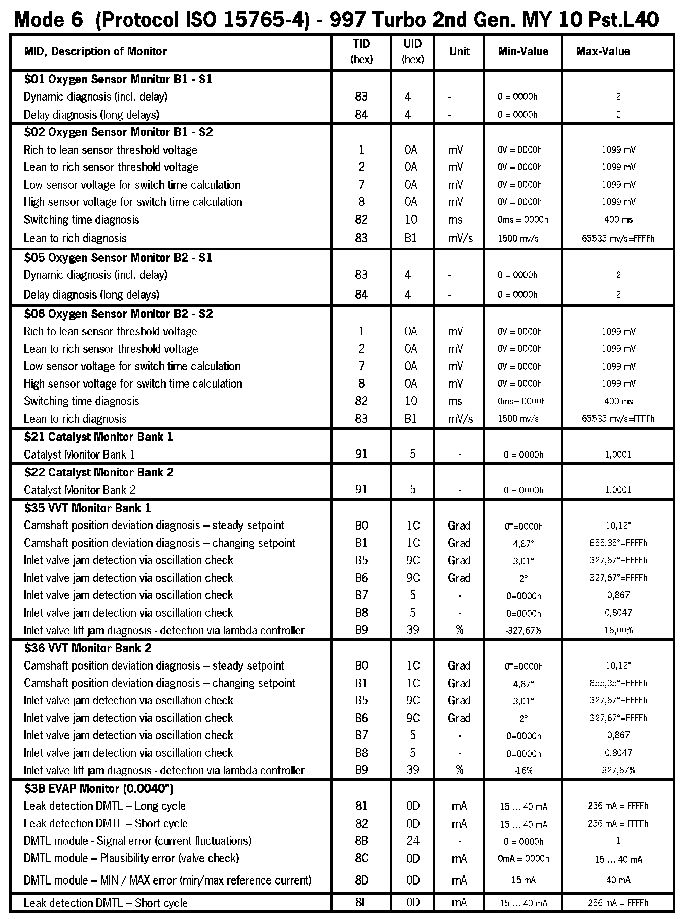 Mode 6 (Protocol ISO 15765-4) - 997 Turbo 2nd Gen. MY 10 Pst.L40
