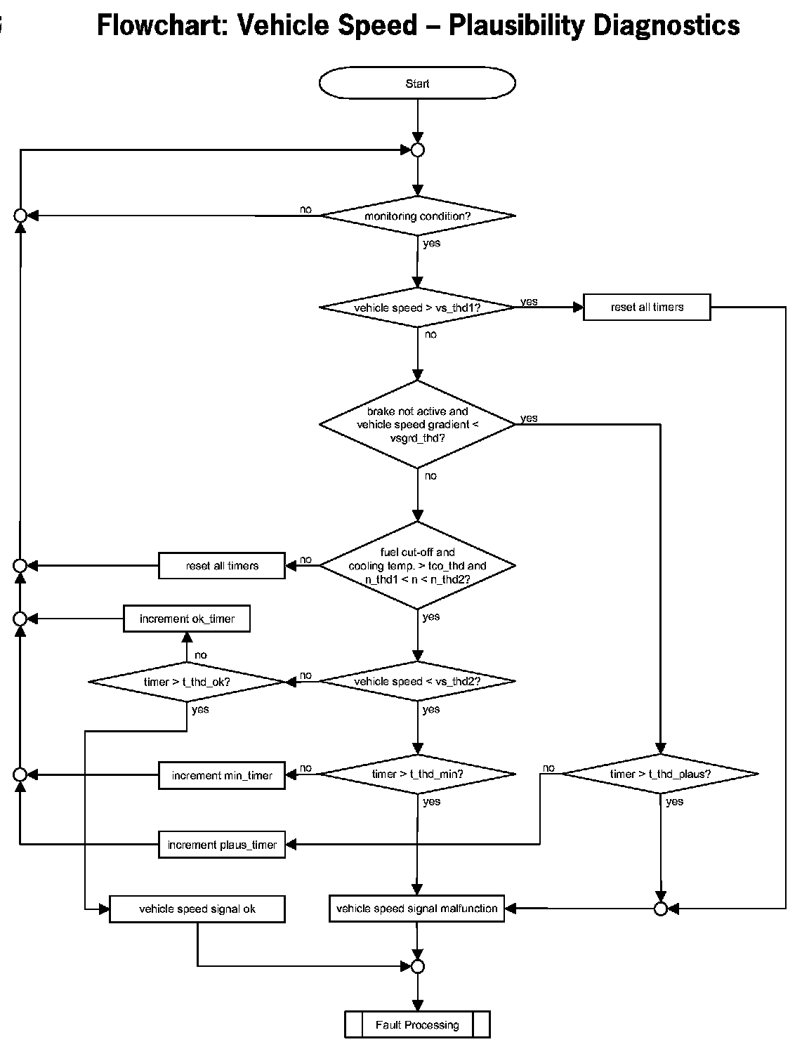 The vehicle speed signal is diagnosed as not faulty if during closed throttle fuel cut-off the vehicle speed is above the appropriate threshold.