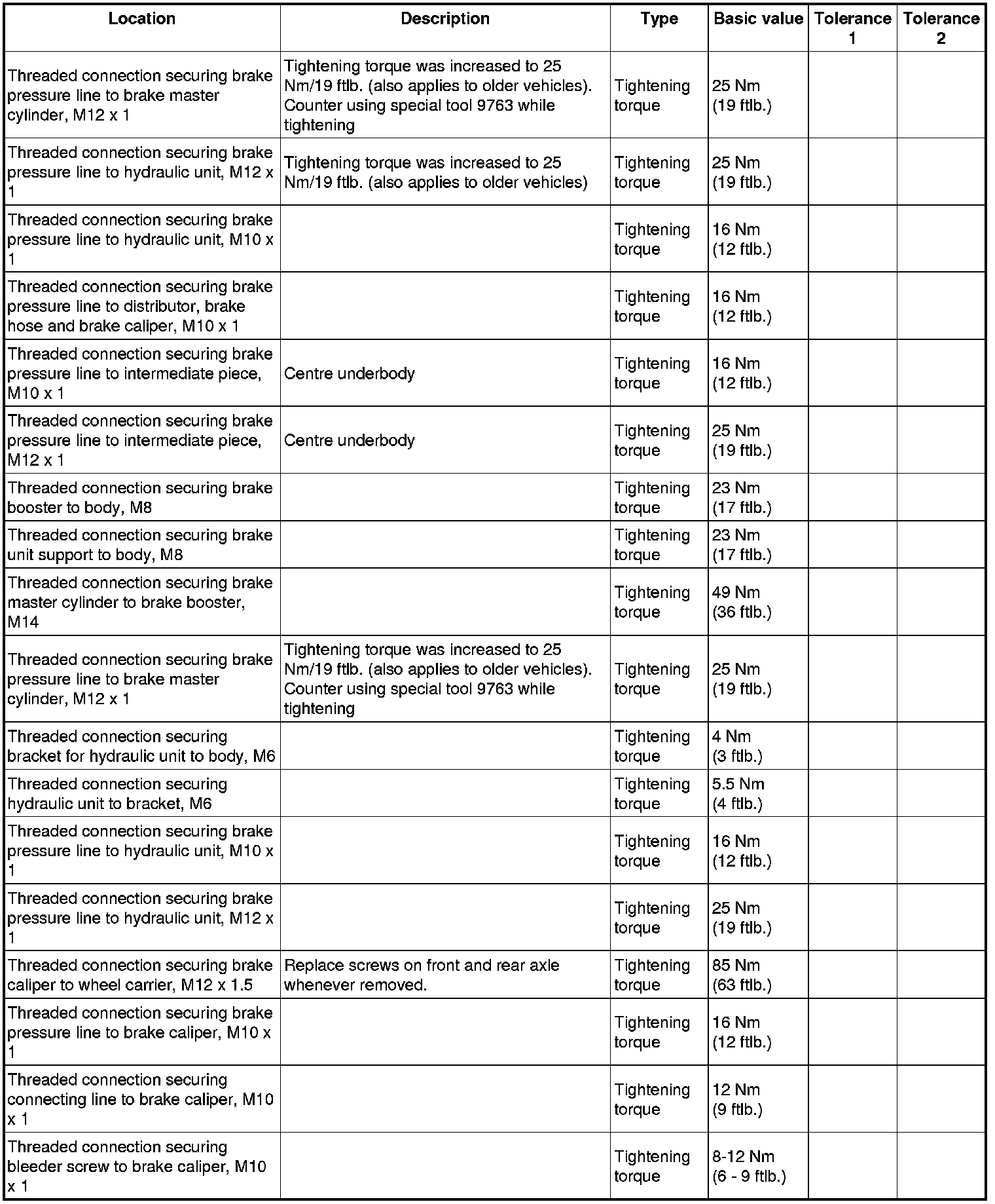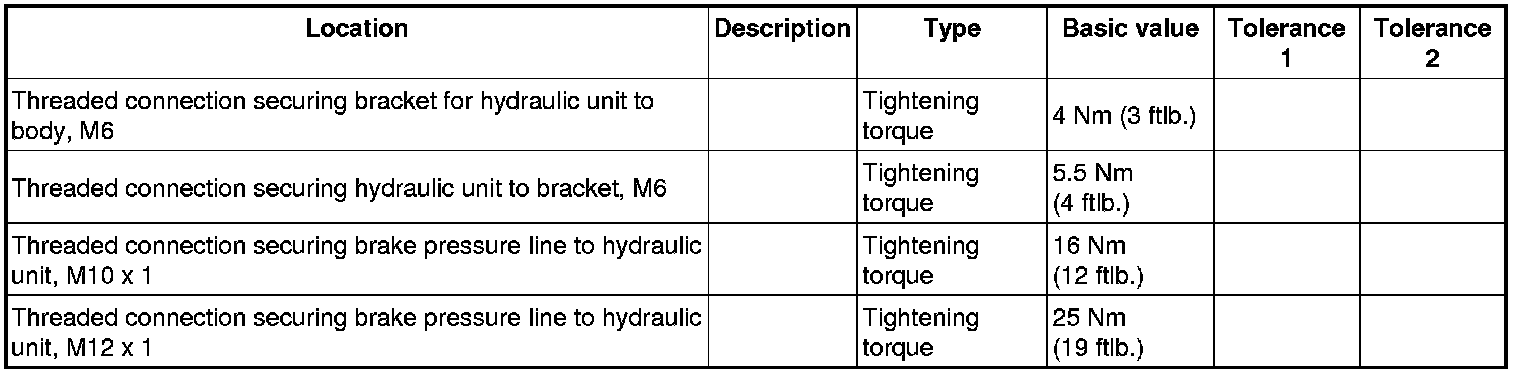 WM 4700TW Tightening torques for brake hydraulics