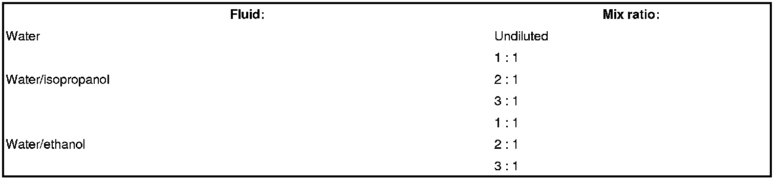 Mix ratio of fluids for windscreen washer system