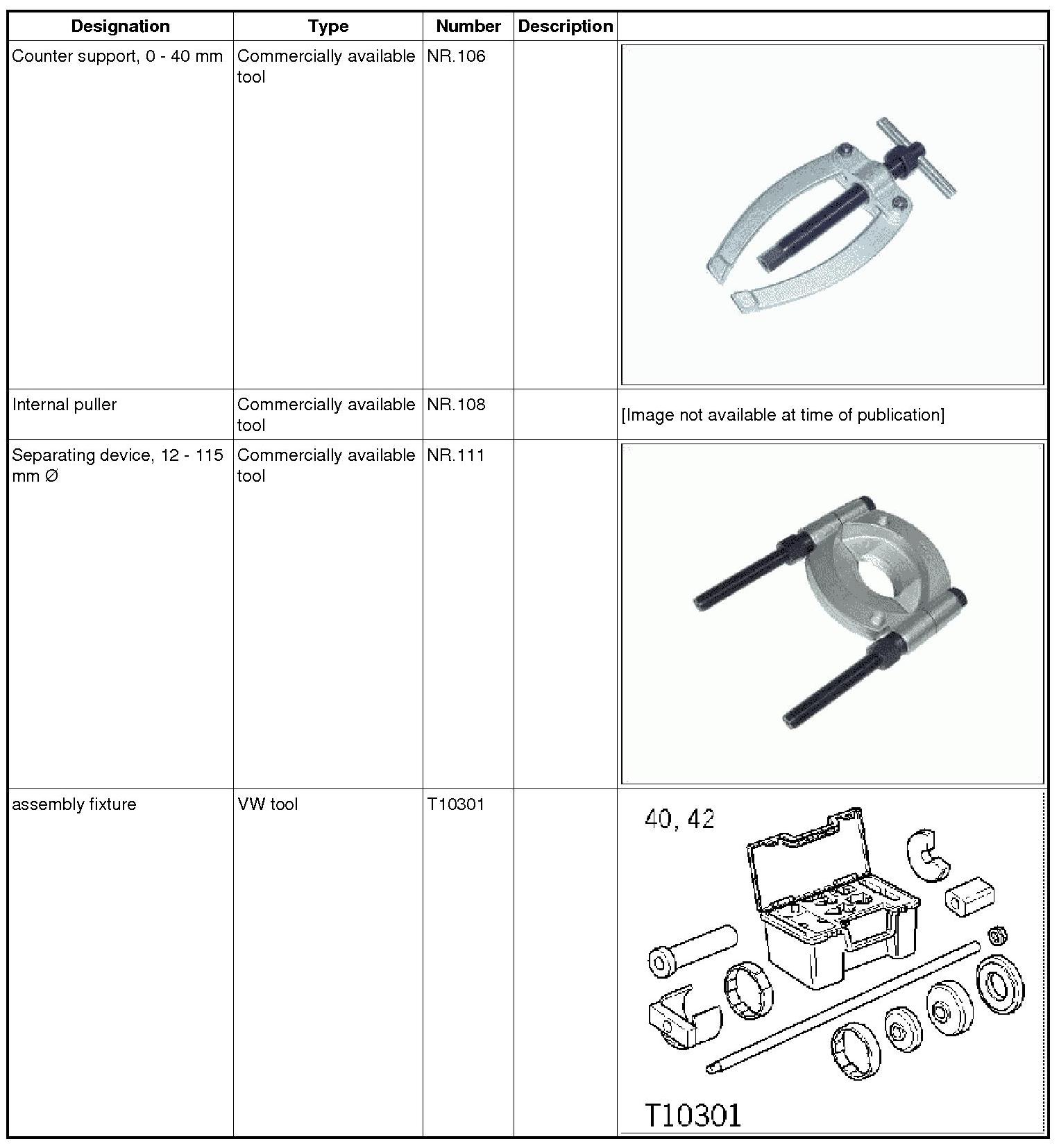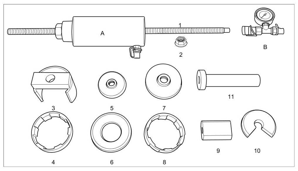 Tool overview for chassis subframe bearings
