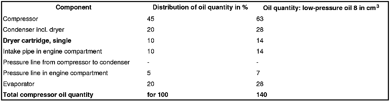 Basic vehicle: Distribution of oil quantity in the individual air conditioning components