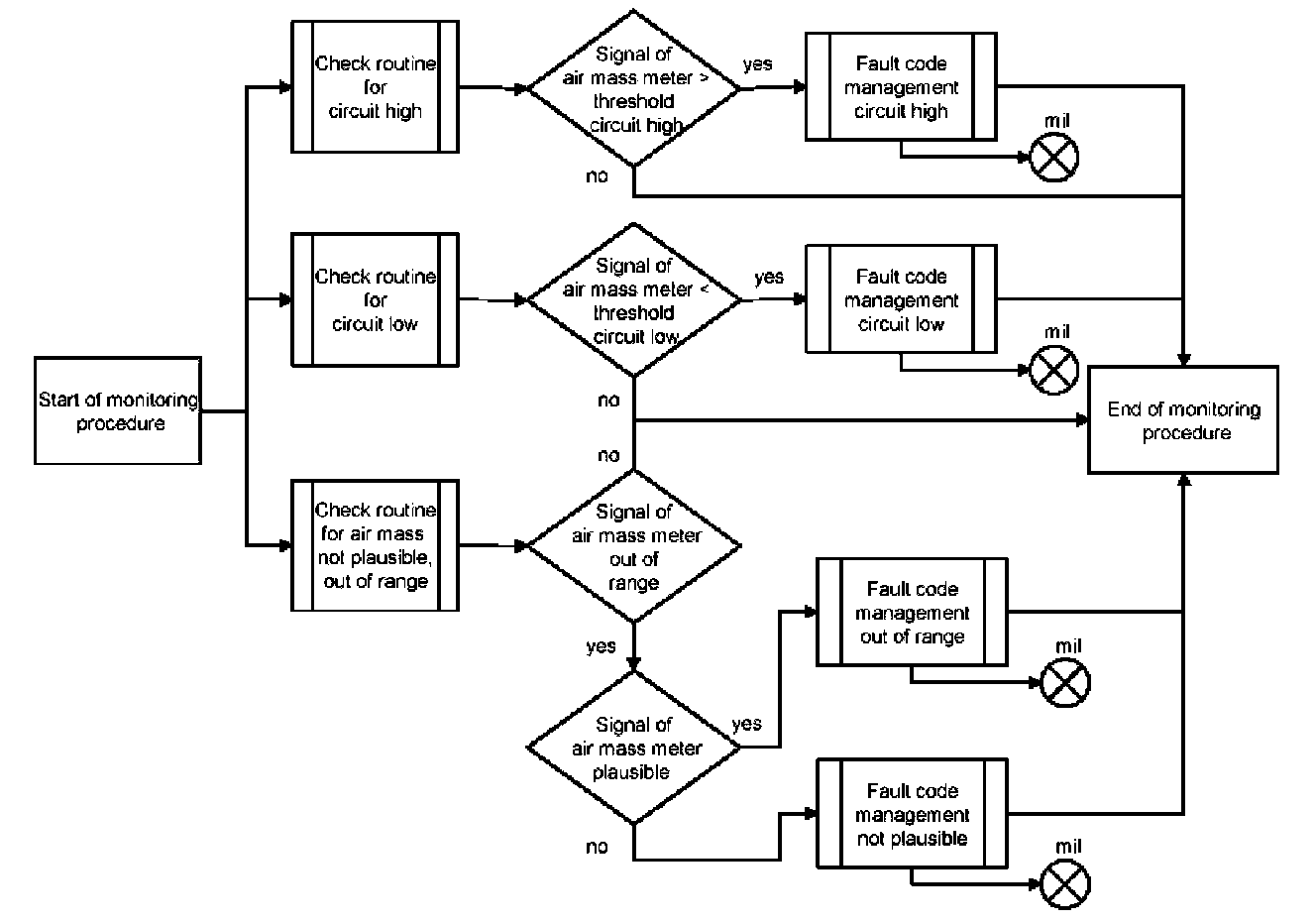 Diagnosis of Air Mass MeterThe Diagnosis of the air mass meter is a non-intermittened diagnosis.
