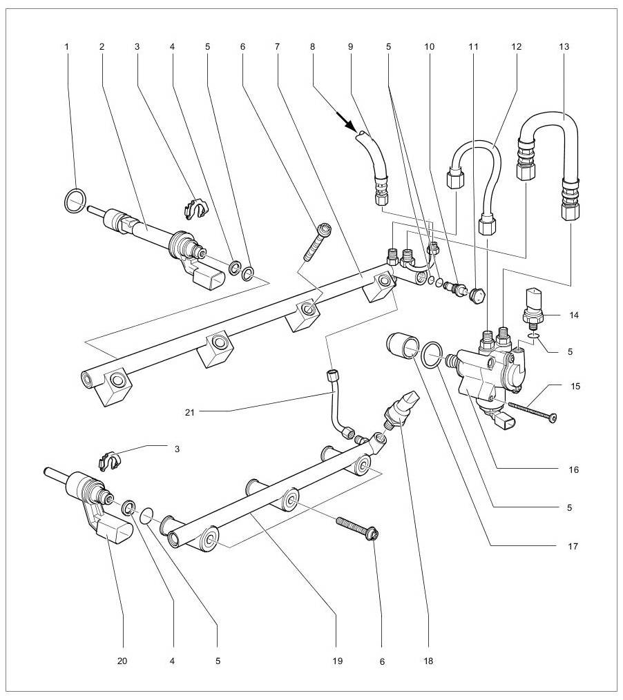 -> The high-pressure distribution pipe (rail) or other fuel feed components in the high-pressure area must always be completely removed.