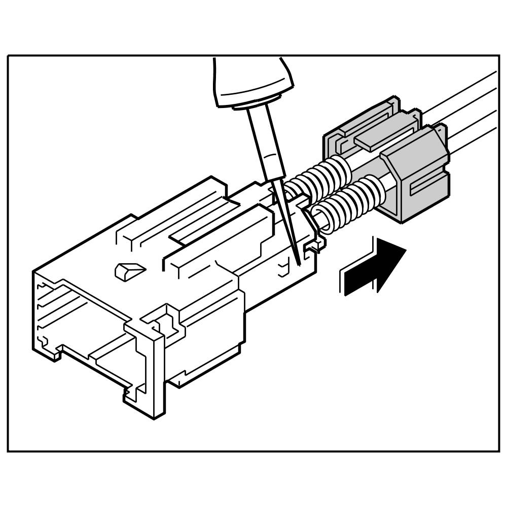 1. Release the spring cap on both sides using the press-out and unlocking tools for tab and round plug connectors of all sizes NR.155 and remove it.