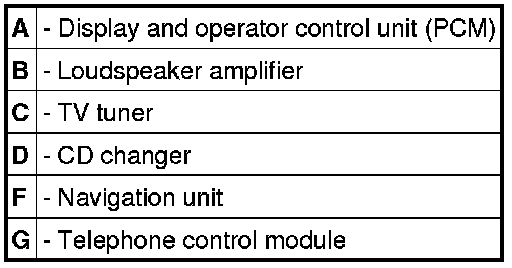 MOST control unit, variant A - B - C - D - F - G: