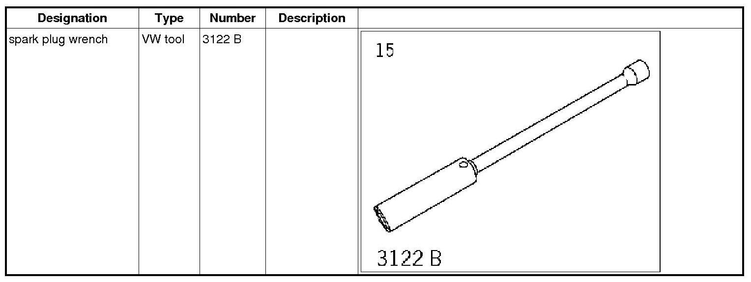 2. Tighten spark plugs using special tool spark plug wrench 3122 B.=> Tightening torque: 20 Nm (15 ftlb.) => Tightening spark plugs using spark plug wrench