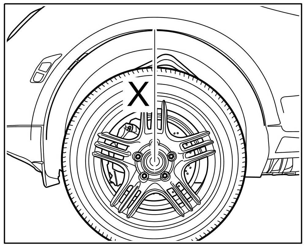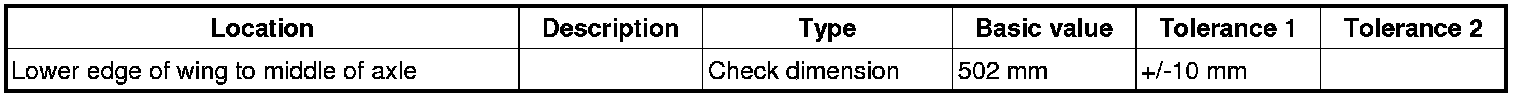 - The entire threaded parts of the axle must be tightened in vehicle position. Vehicle position means: vehicle standing on the wheels, or the wheel suspension is raised using a universal vehicle lift. -Dimension X- , corresponds to vehicle position.=> Check dimension: 502 mm+/-10 mm