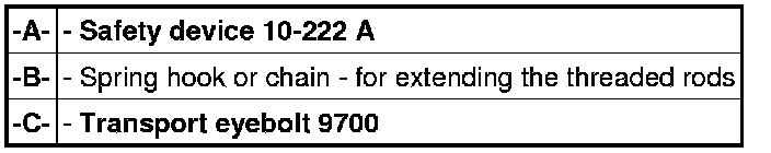 11. Remove the safety device 10-222 A. To do this, remove the transport eyebolt 9700 -B- and the chain -A- , which is used to secure the engine.