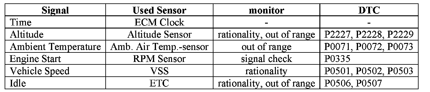 According to (e)(11.2.1), the individual component related to the above strategies has to be monitored. The table below demonstrates that all catalyst heating measures are covered by components which are monitored individually. The long term fuel system and the valve lift diagnosis, which need a lambda signal for monitoring, are finished after the catalyst warm-up phase. Errors will be detected before the next catalyst warm-up.