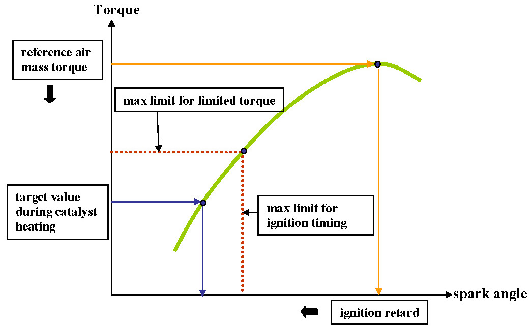 The spark retard is limited (fixed) during the catalyst heating phase.