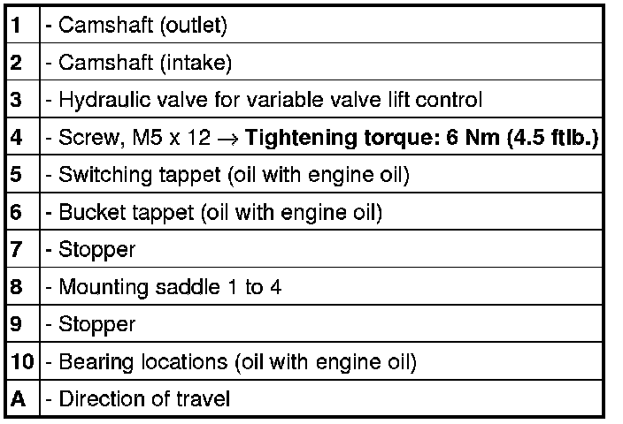 WM 155519 Removing and installing hydraulic valve for valve lift switchover (variable valve lift adjustment)
