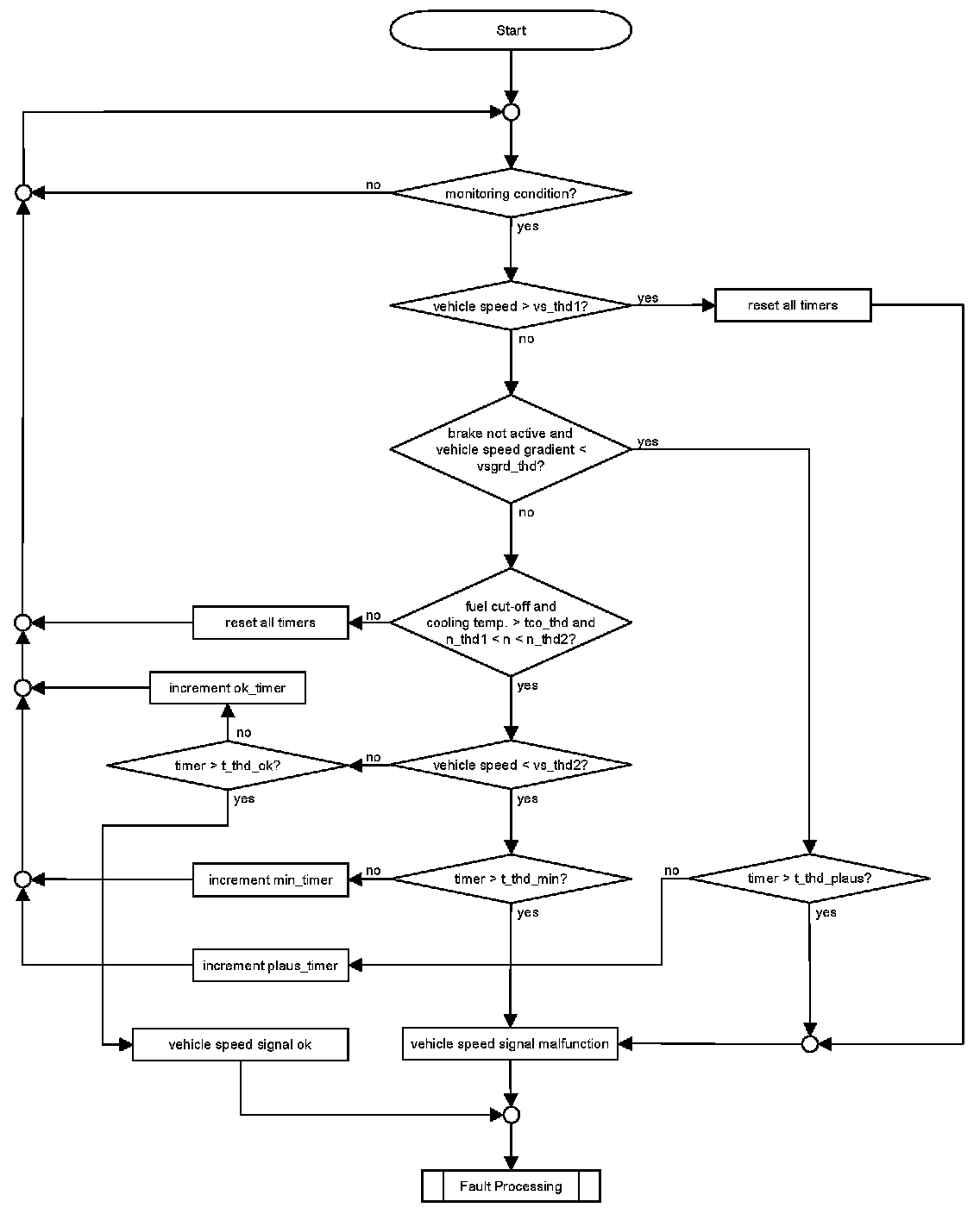 The vehicle speed signal is diagnosed as not faulty if during closed throttle fuel cut-off the vehicle speed is above the appropriate threshold.