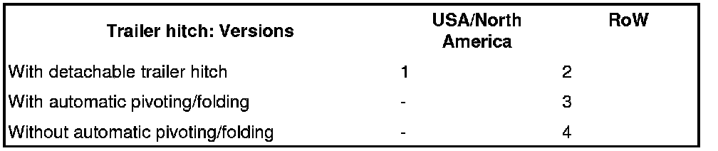 - The No automatic folding/pivoting option can be coded if there are doubts about safety. The button then must be kept pressed until the trailer hitch is completely retracted or extended. => 669619 Removing and installing control unit for trailer hitch - "Information" section.