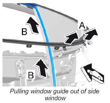 4.2. Pull window guide out of the side window -B- .
