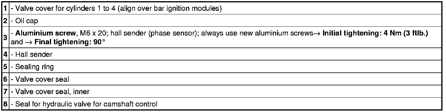Bar ignition modules and valve cover, cylinders 1 to 4