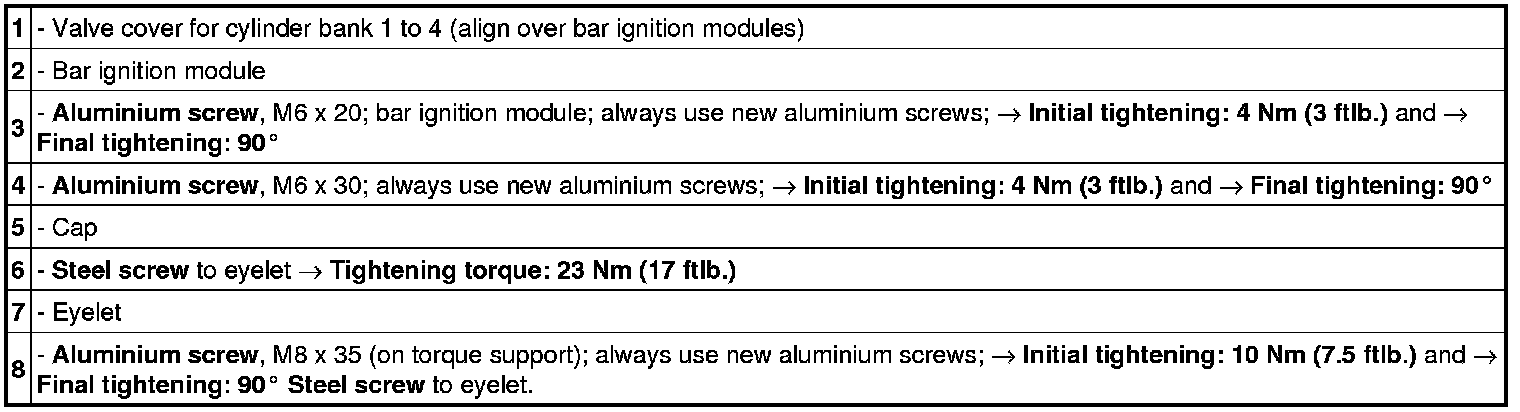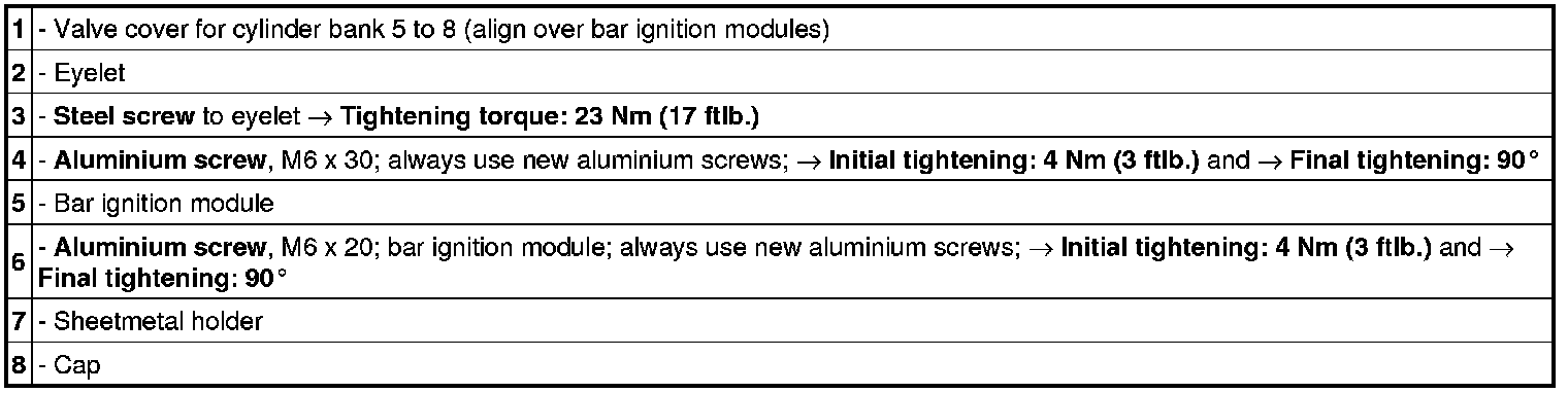 Bar ignition modules and valve cover, cylinder bank 5 to 8
