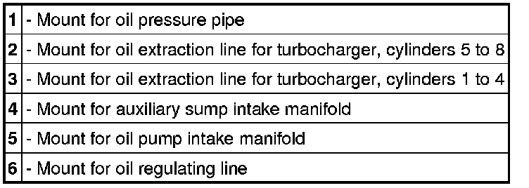 Oil lines, turbo engine, view with oil pan removed