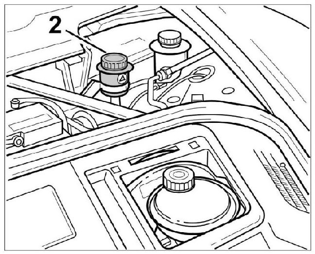 For your information: Unlike on other Porsche models, Pentosin is also used as the clutch control medium for the 911 Turbo. This additional Pentosin reservoir -2- for the 911 Turbo with manual transmission is located under a cover in the luggage compartment.