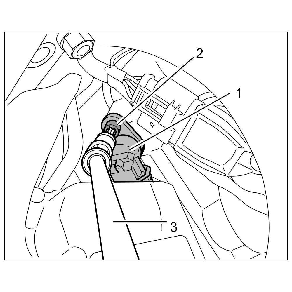 1. Fit hall sender -2- with a new O-ring and screw in and tighten the fastening screw (T30, M6 x 16) -3-.
