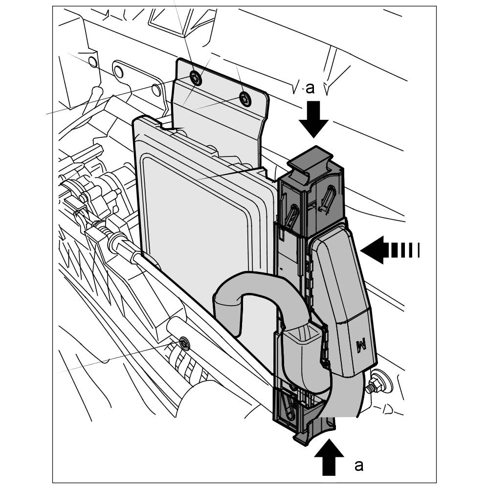 2. Release electric connectors -a- and pull them off the DFI control unit.