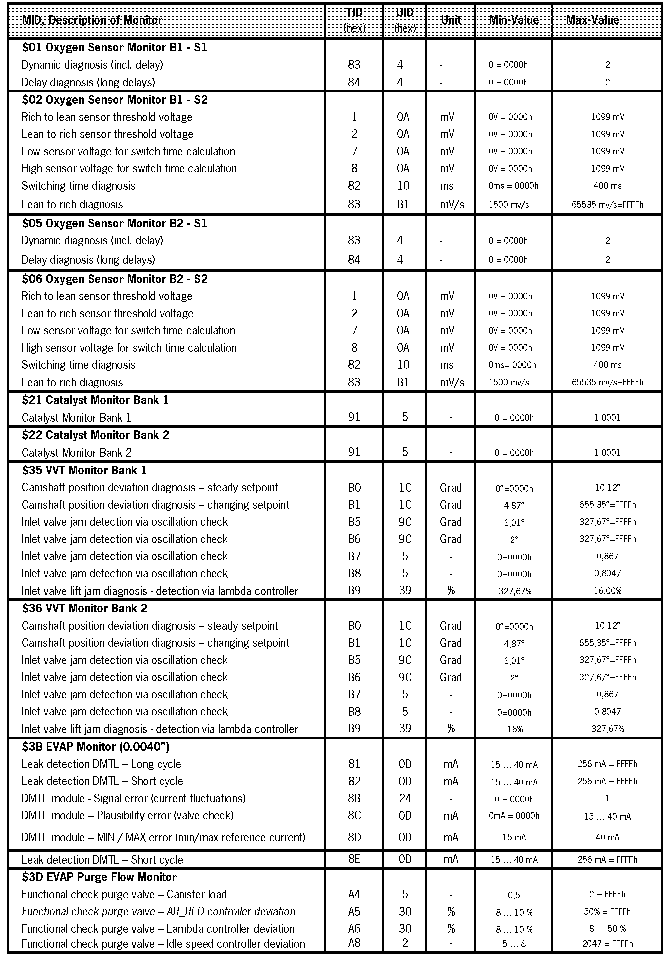 Mode 6 (Protocol ISO 15765-4) - 997 Turbo 2nd Gen. MY 10 Pst.L40