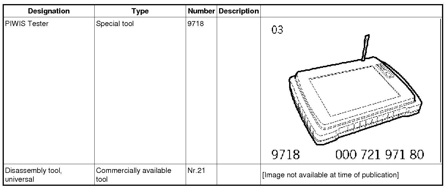 The procedure described here has been structured in general terms; different text or additions may appear in the PIWIS Tester 9718.