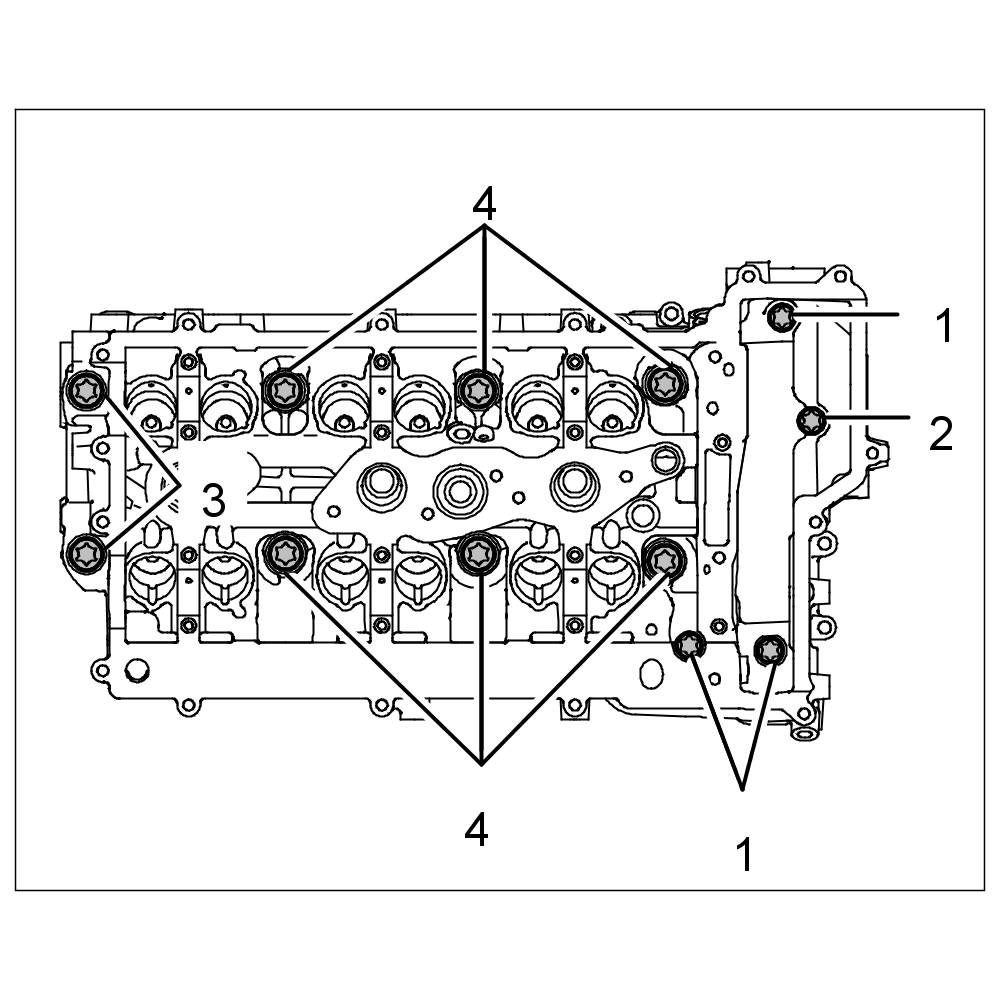 Screw in external Torx screws (E10, M6 x 25) on the outside of the cylinder head and tighten according to specifications.