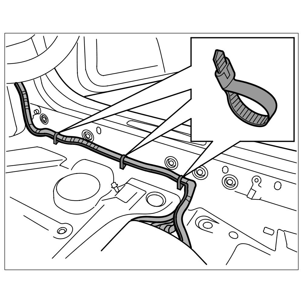 2. Route the new optical waveguide along the main wire harness, guide it through the existing cable ducts and tie it to the main wire harness using tie-wraps.