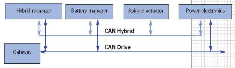 The hybrid components communicate with one another via the CAN Hybrid bus.