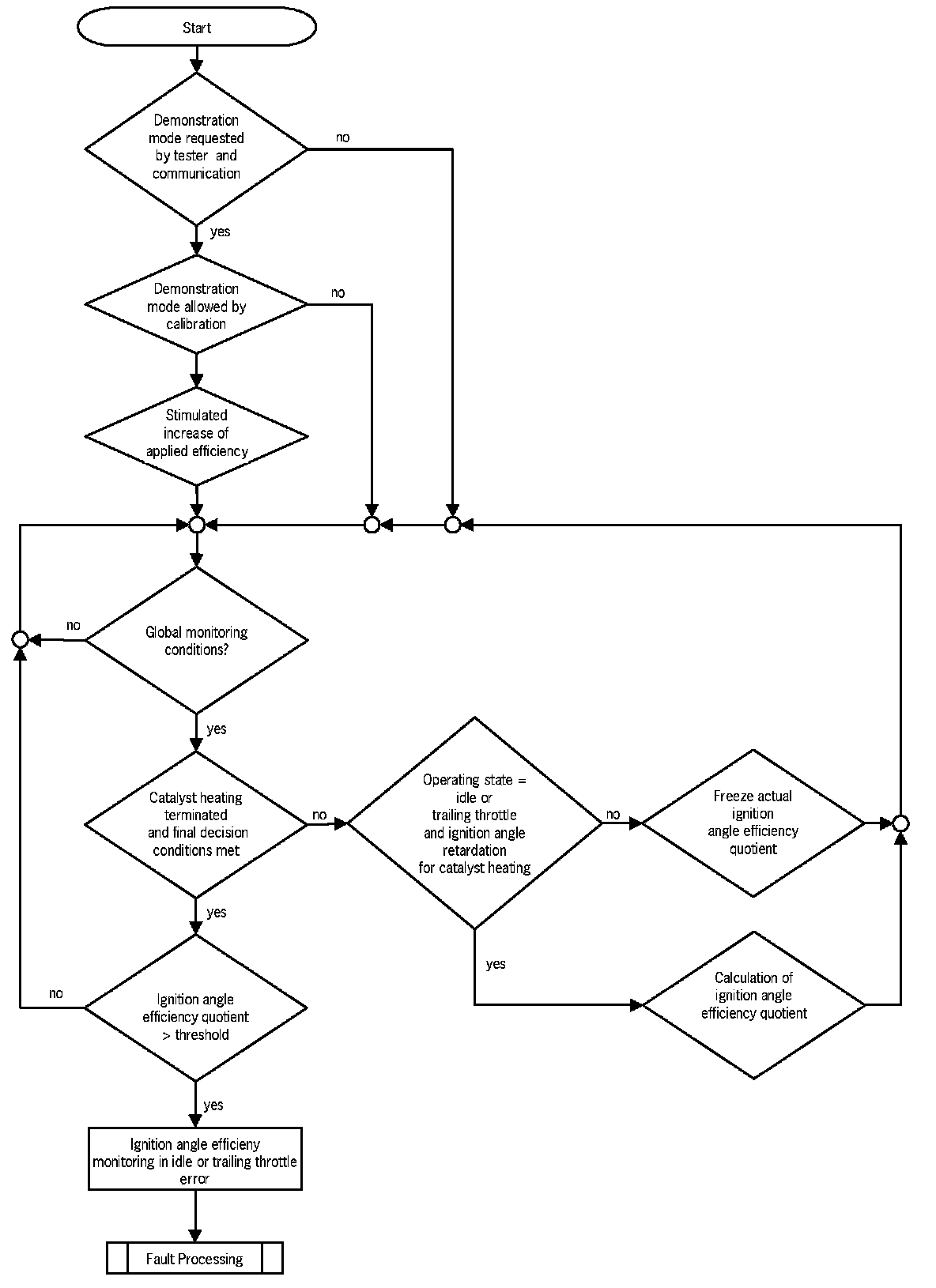 Flowchart: Ignition angle efficiency monitoring in part load