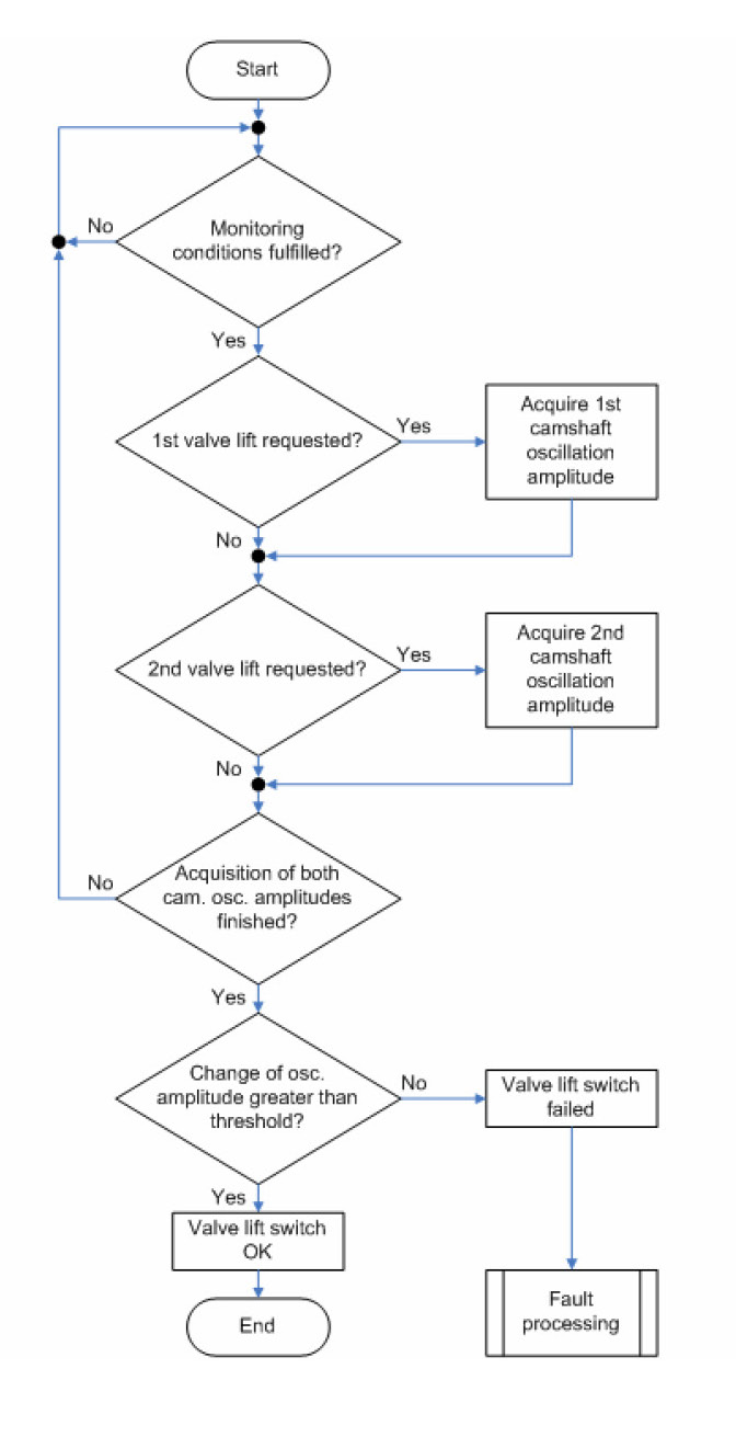 If the change of the camshaft oscillation amplitude before and after the valve lift change request is smaller than a threshold, i.e. no change of the oscillation, then a failure (valve lift change not possible) is detected.