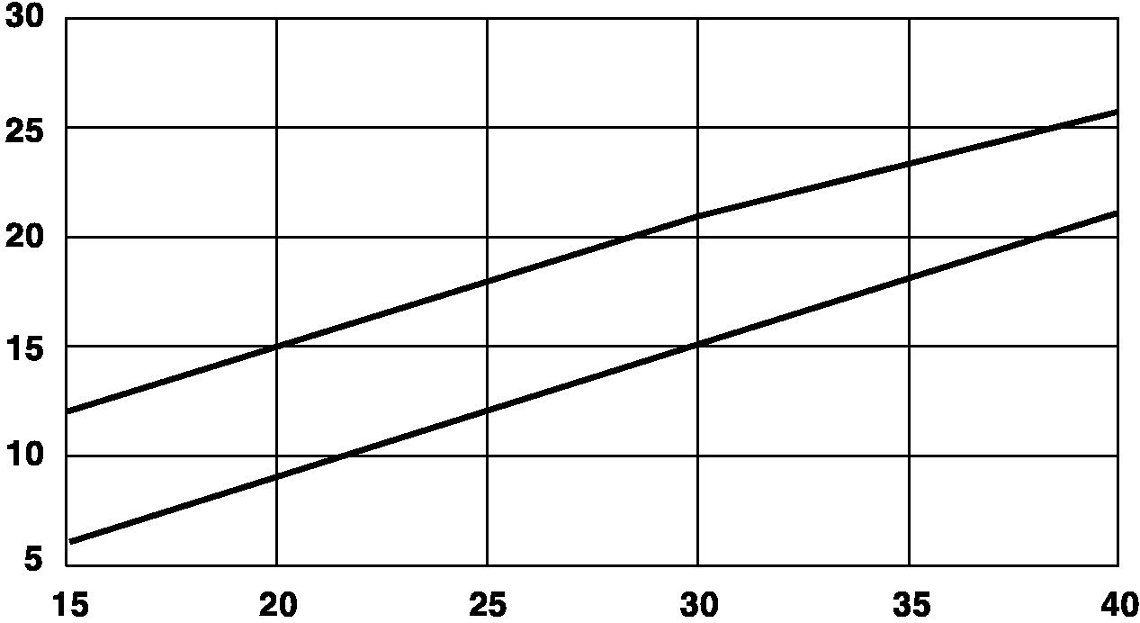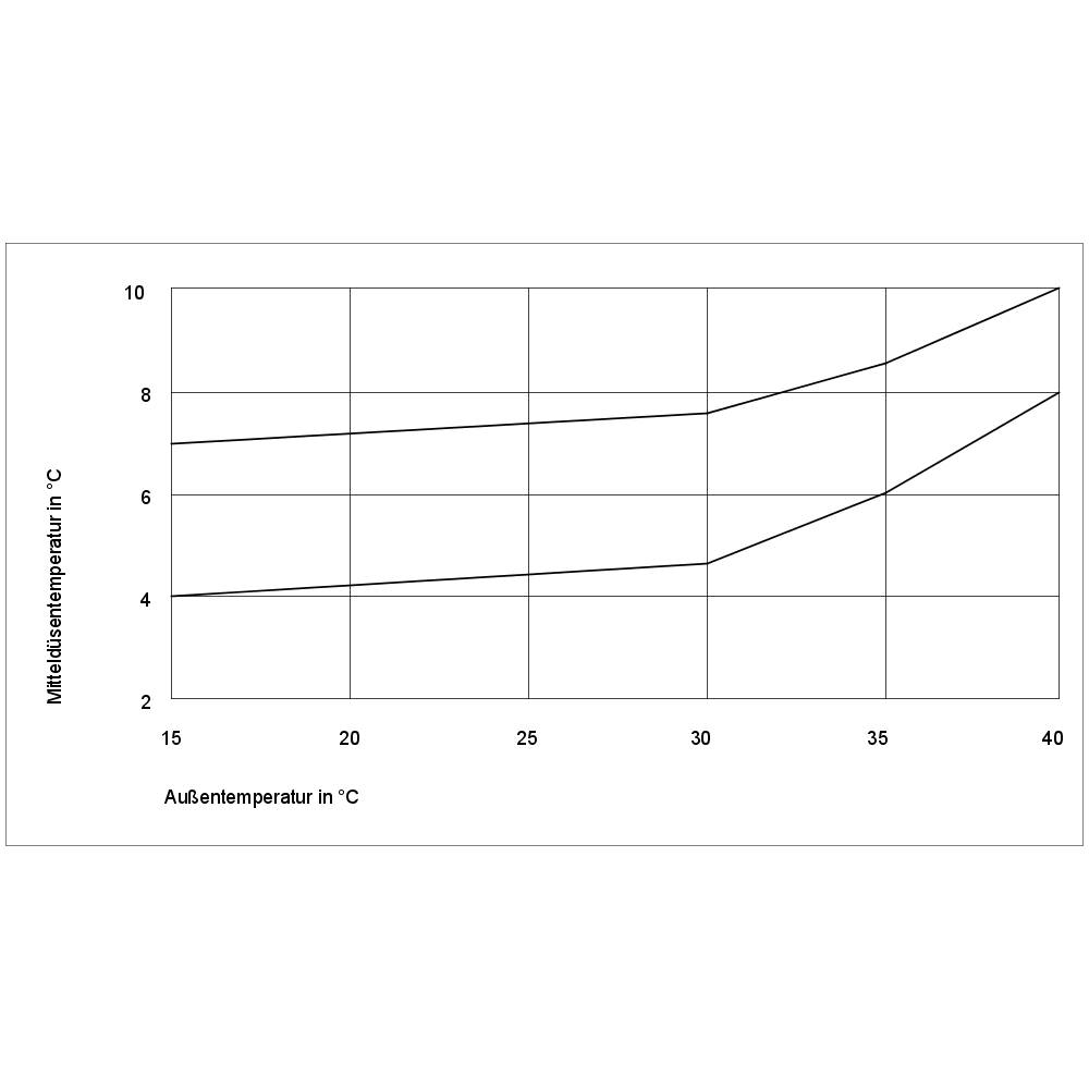 - The temperature of the air from the "centre" dashboard vents must lie within the prescribed tolerance range within 8 minutes, depending on the ambient temperature (see diagram).