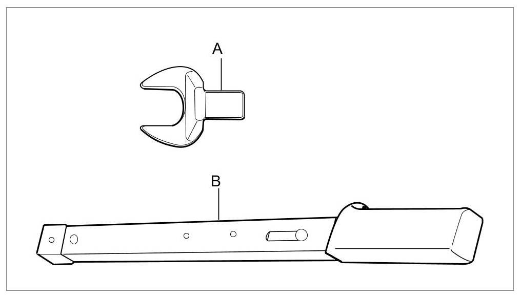For reasons of accessibility, the screw head at the eccentric screw for the toe cannot be turned. It can be adjusted at the nut side -2- by attaching another larger hexagon with an eccentric washer -1- (a/f 26) to it. The toe can be adjusted on this in the usual way.