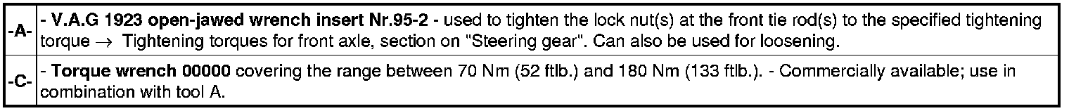 Tighten lock nut on tie rod at -3- to 70 Nm (52 ftlb.) in conjunction with accessory for torque wrench: open-jawed wrench insert a/f 22 Nr.95.