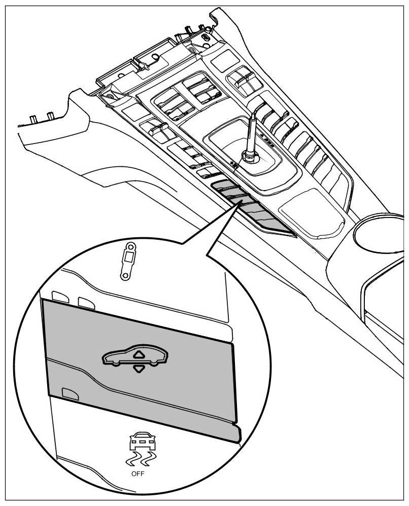 3. Press the high level control button on the centre console until ]]High level on[[ is set (light on the button comes on). When you press the high level control button again, ]]High level off[[ is set (light on the button goes off). The levels are displayed in the instrument cluster.