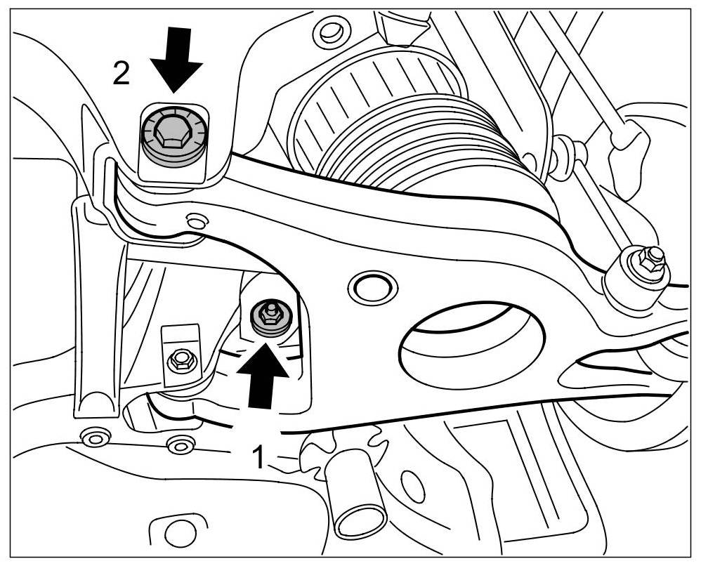 Specified tightening torque for lock nut on camber eccentric adjuster -1- = 100 Nm (74 ftlb.)!
