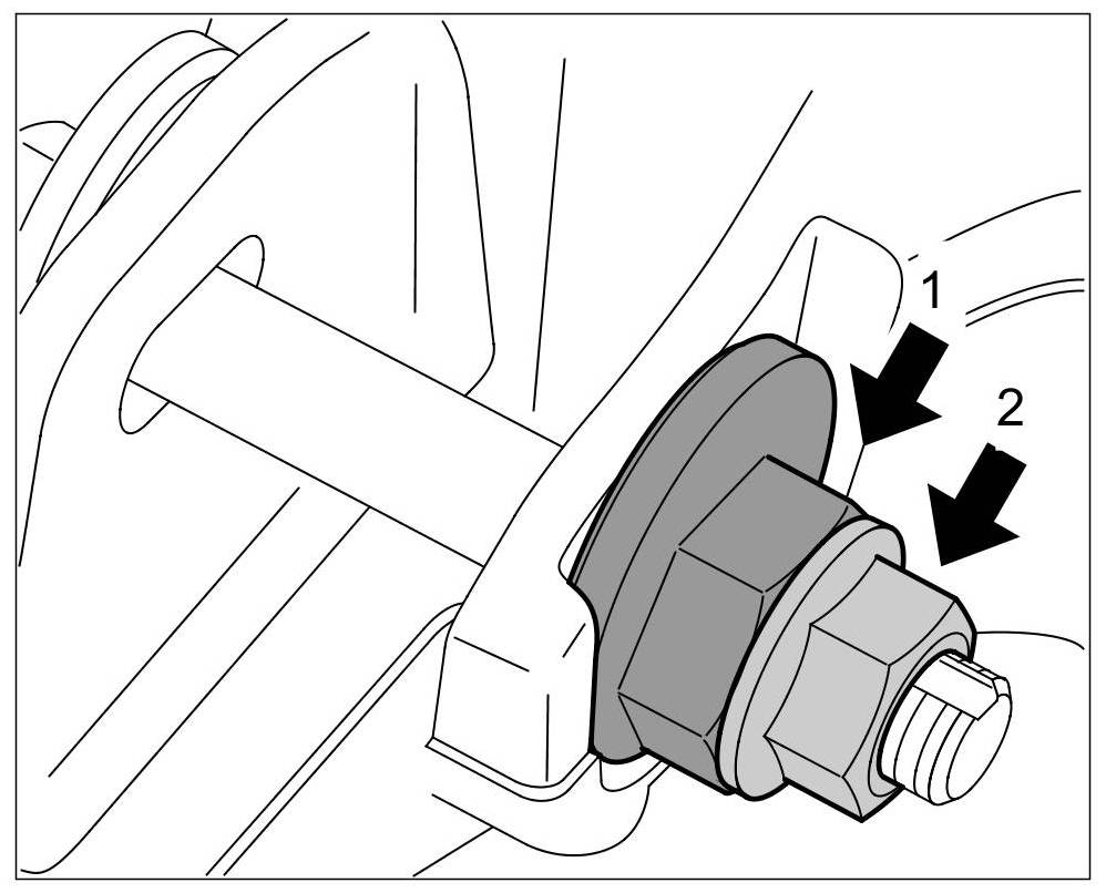 When tightening the nut -2- to the specified torque, always counter at the large hexagon -1-.