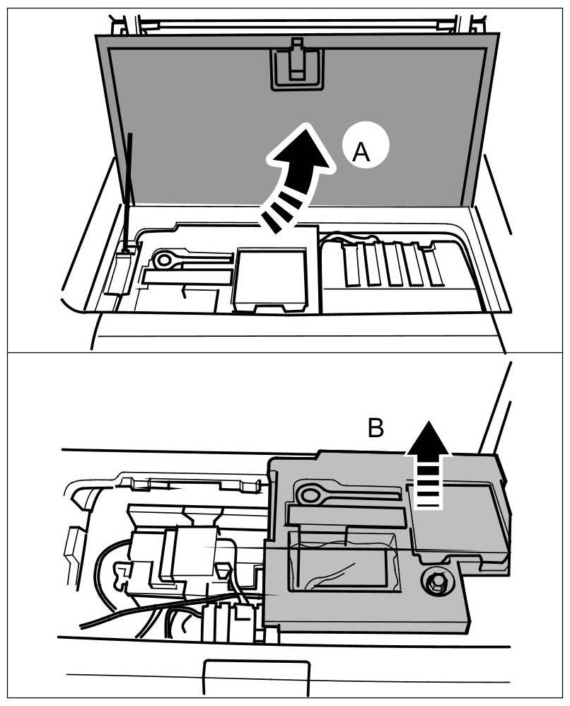1. Open the luggage compartment tray -arrow A- and remove the toolbox lying underneath -arrow B-.