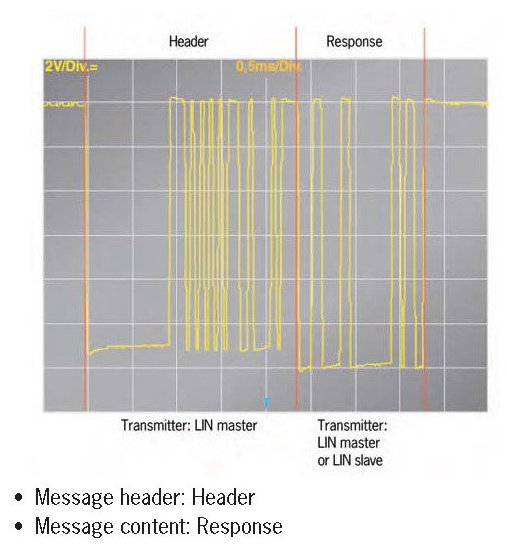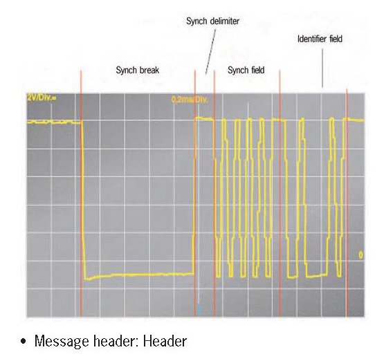 The header is sent by the LIN master control unit on a cyclical basis It can be divided into four sections: