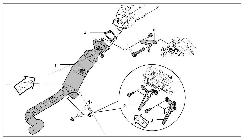 4. Fit the three remaining fastening nuts between the primary catalytic converter and exhaust manifold and tighten all nuts to the specified tightening torque.