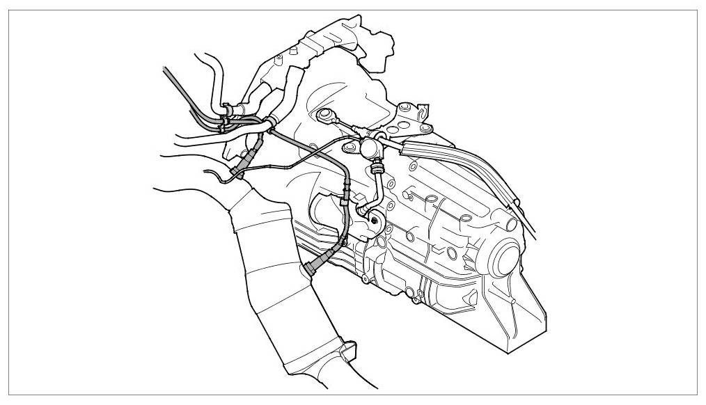 5. Unclip cable at the transmission housing => Oxygen sensor cable routing.