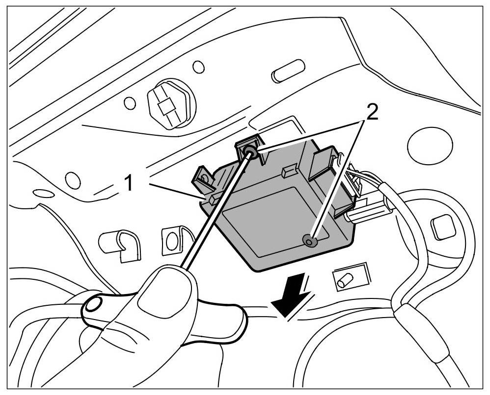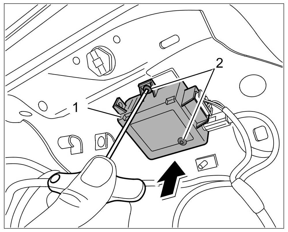 1. Unscrew fastening screws -2- on control unit for auxiliary heater -1-.